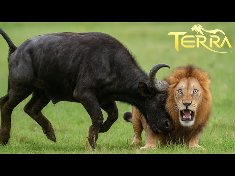 Sin embargo, el búfalo africano tiene una presencia propia. Un elefante podría ahuyentarlo, pero no con fuerza. Un elefante usó su trompa para apartar al búfalo, pero este se negó a moverse. El elefante entonces levantó su pata y pateó al búfalo en la cabeza. Fue recibido de inmediato por un embiste de los gruesos y pesados cuernos del búfalo. En otro caso, cuando un elefante intentó apartar a un búfalo, el búfalo se giró y miró al elefante. Claramente, no estaba contento. Al ver al "monstruo negro" manteniendo su posición en silencio, el elefante retrocedió y se quedó quieto hasta que el búfalo finalmente se fue. Pero, ¿eso significa que el elefante africano de sabana es tímido? Suscríbete a nuestro canal y descúbrelo en el próximo episodio.